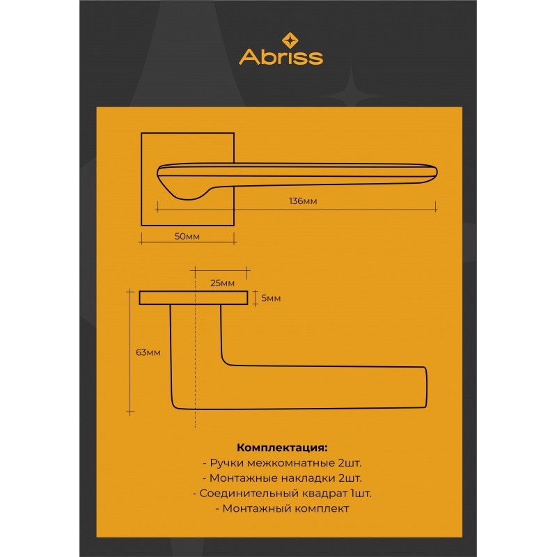 Дверная фурнитура ТМ ABRISS - это стильный дизайн, высокое качество и лаконичность форм. Наши дверные ручки украсят современный интерьер жилого и офисного помещения.