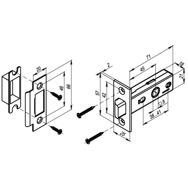 Защелка врезная METL45-8 ( L45-8) BL черный