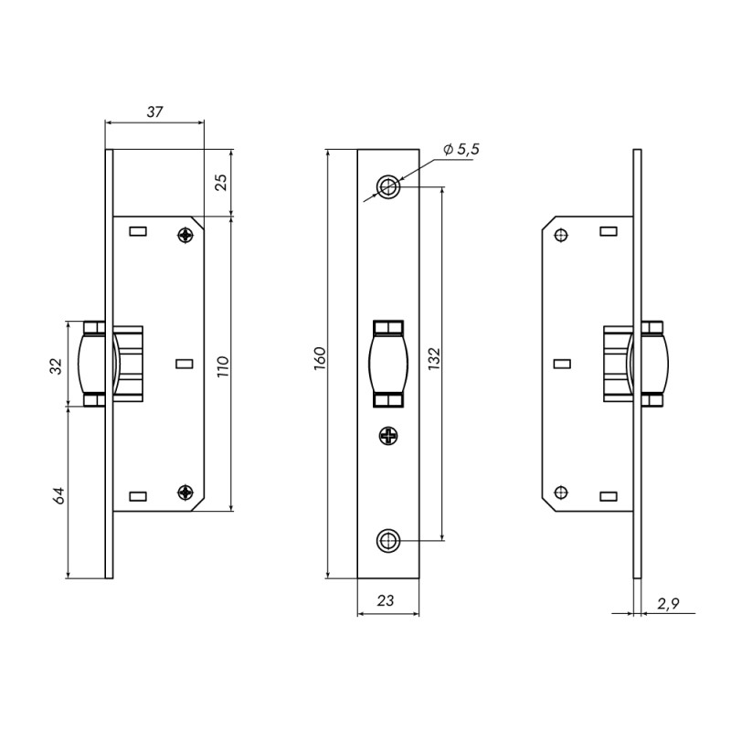 Защелка-ролик врезная LR-155B предназначена для легких дверей. Корпус выполнен из оцинкованной стали, роликовая металлическая защелка . Ширина планки - 23 мм. Ширина защелки - 32 мм. Цвет: мат.никель.