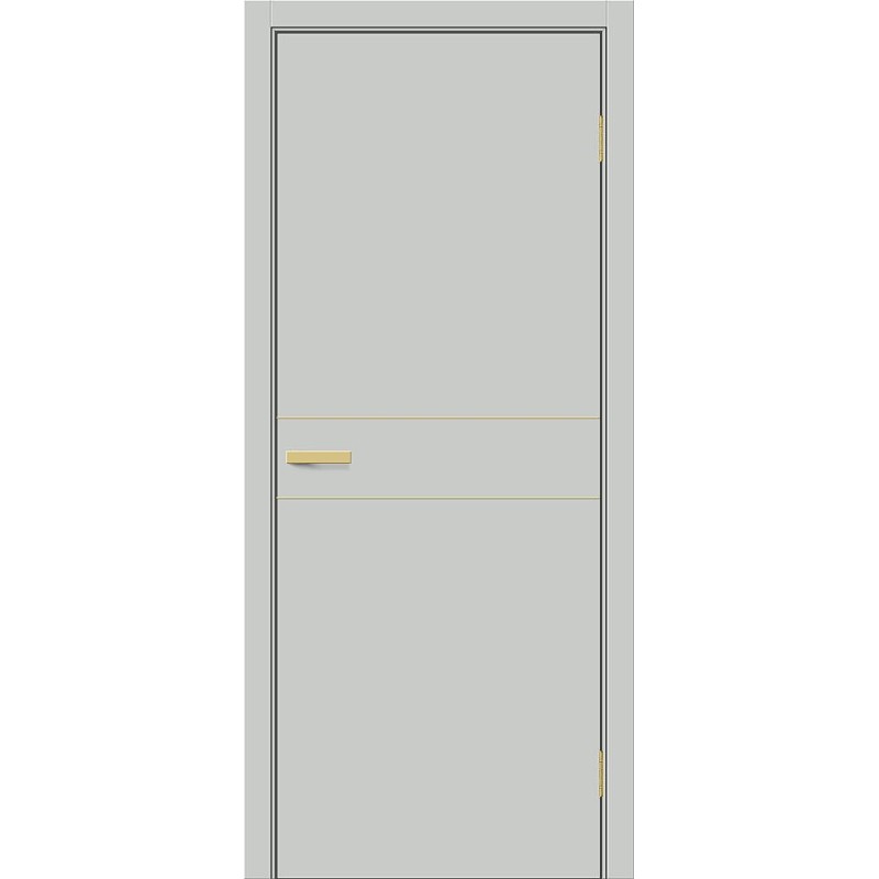 Межкомнатная глухая дверь щитовой конструкции с золотыми матовыми декоративными вставками, исполнение «П» (Премиум). Особенности: Композитный каркас двери облицован плитами высокой плотности толщиной 6 мм, что вдвое превышает стандартную толщину. Внутри жесткая и прочная панель Honeycomb Block. Торцы защищены износостойкой кромкой толщиной 1 мм по технологии «невидимого шва». Для кромкооблицовки и отделки лицевых поверхностей применяется влагостойкий PUR-клей необратимой полимеризации. Отделка: ПЭТ - инновационное покрытие c гладкой и приятной на ощупь поверхностью, устойчиво к повреждениям, не выцветает со временем. «Эмаль-эффект» - как эмаль, только лучше. Один из самых экологичных материалов (институт Fraunhofer IVV, Германия). Компания Bravo первой в России начала использовать 100% ПЭТ (без добавок) для промышленного производства дверей. Декор: Grey Silk — примерно соответствует RAL 7038, матовый (≈ 4,5 GU), SGold (SG) — золотые матовые вставки (P3). Комплектующие: Телескопические погонажные изделия для качественного регулируемого монтажа. Дверная коробка с TPE-уплотнителем для мягкого закрывания. Толщина, мм: 36 Масса брутто, кг: 22.3 Объем, куб.м: 0.072