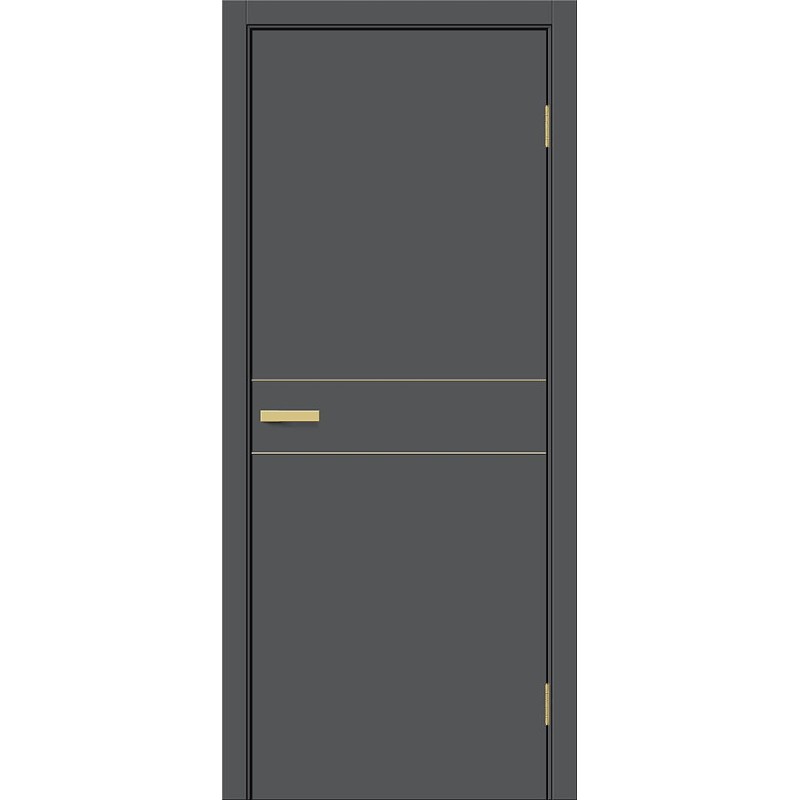 Межкомнатная глухая дверь щитовой конструкции с золотыми матовыми декоративными вставками, исполнение «П» (Премиум). Особенности: Композитный каркас двери облицован плитами высокой плотности толщиной 6 мм, что вдвое превышает стандартную толщину. Внутри жесткая и прочная панель Honeycomb Block. Торцы защищены износостойкой кромкой толщиной 1 мм по технологии «невидимого шва». Для кромкооблицовки и отделки лицевых поверхностей применяется влагостойкий PUR-клей необратимой полимеризации. Отделка: ПЭТ - инновационное покрытие c гладкой и приятной на ощупь поверхностью, устойчиво к повреждениям, не выцветает со временем. «Эмаль-эффект» - как эмаль, только лучше. Один из самых экологичных материалов (институт Fraunhofer IVV, Германия). Компания Bravo первой в России начала использовать 100% ПЭТ (без добавок) для промышленного производства дверей. Декор: Stormy Silk — примерно соответствует RAL 7016, матовый (≈ 3,8 GU), SGold (SG) — золотые матовые вставки (P3). Комплектующие: Телескопические погонажные изделия для качественного регулируемого монтажа. Дверная коробка с TPE-уплотнителем для мягкого закрывания. Толщина, мм: 36 Масса брутто, кг: 22.3 Объем, куб.м: 0.072
