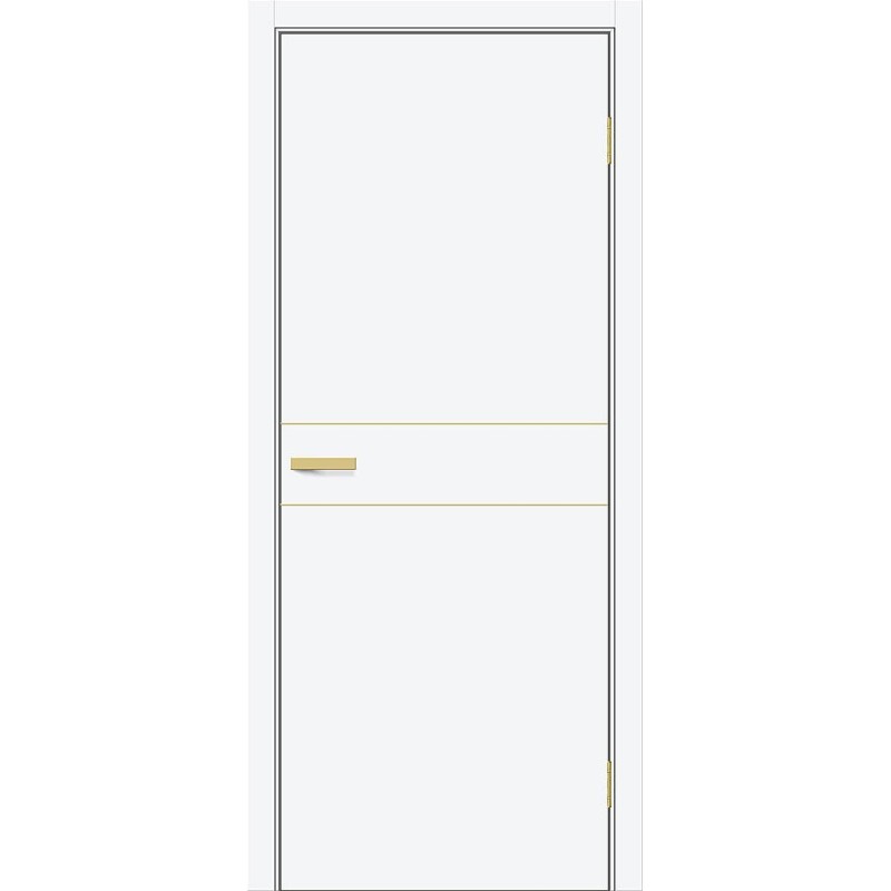 Межкомнатная глухая дверь щитовой конструкции с золотыми матовыми декоративными вставками, исполнение «П» (Премиум). Особенности: Композитный каркас двери облицован плитами высокой плотности толщиной 6 мм, что вдвое превышает стандартную толщину. Внутри жесткая и прочная панель Honeycomb Block. Торцы защищены износостойкой кромкой толщиной 1 мм по технологии «невидимого шва». Для кромкооблицовки и отделки лицевых поверхностей применяется влагостойкий PUR-клей необратимой полимеризации. Отделка: ПЭТ - инновационное покрытие c гладкой и приятной на ощупь поверхностью, устойчиво к повреждениям, не выцветает со временем. «Эмаль-эффект» - как эмаль, только лучше. Один из самых экологичных материалов (институт Fraunhofer IVV, Германия). Компания Bravo первой в России начала использовать 100% ПЭТ (без добавок) для промышленного производства дверей. Декор: White Silk — примерно соответствует RAL 9003, матовый (≈ 5,8 GU), SGold (SG) — золотые матовые вставки (P3). Комплектующие: Телескопические погонажные изделия для качественного регулируемого монтажа. Дверная коробка с TPE-уплотнителем для мягкого закрывания. Толщина, мм: 36 Масса брутто, кг: 22.3 Объем, куб.м: 0.072