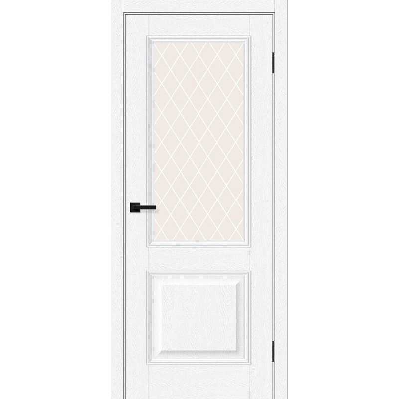 Межкомнатная дверь Классик-13 цвет White Silkwood, стекло White Сrystal, покрытие ПЭТ, размер 200*80 см.