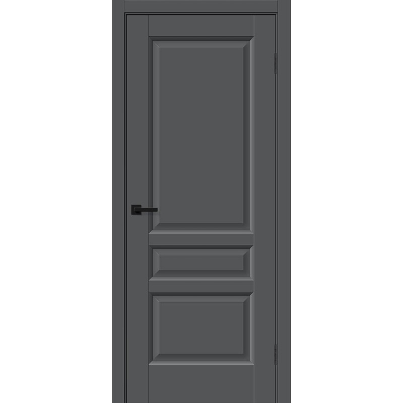 Межкомнатная глухая дверь рамочной конструкции с объемной филенкой. Особенности: Композитный каркас двери со стабилизирующим слоем LVL или соснового бруса облицован плитами высокой плотности, без пустот. Дверь проклеена в местах соединения деталей, что обеспечивает долгий срок службы. Бескромочная технология производства, торцы защищены по технологии «2-Edge». Для отделки всех лицевых поверхностей применяется влагостойкий PUR-клей необратимой полимеризации. Крепеж из закаленной стали надежно фиксирует детали двери в 12 точках (в обычных дверях не более 8). Отделка: ПЭТ - инновационное покрытие c гладкой и приятной на ощупь поверхностью, устойчиво к повреждениям, не выцветает со временем. «Эмаль-эффект» - как эмаль, только лучше. Один из самых экологичных материалов (институт Fraunhofer IVV, Германия). Компания Bravo первой в России начала использовать 100% ПЭТ (без добавок) для промышленного производства дверей. Декор: Stormy Silk - примерно соответствует RAL 7016, матовый (≈ 3,8 GU). Комплектующие: Телескопические погонажные изделия для качественного регулируемого монтажа. Дверная коробка с TPE-уплотнителем для мягкого закрывания. Толщина, мм: 36 Масса брутто, кг: 29.3 Объем, куб.м: 0.064