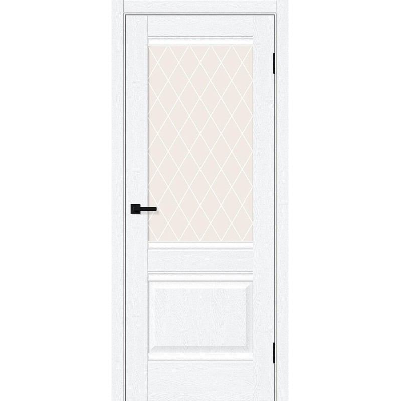 Межкомнатная дверь Прима-3 цвет White Silkwood, стекло White Сrystal, покрытие ПЭТ, размер 200*80 см.