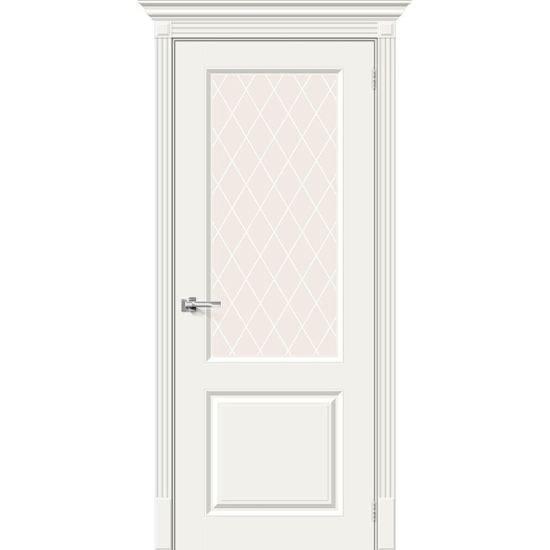 Межкомнатная дверь Скинни-13 цвет Whitey, стекло White Сrystal, покрытие Эмаль, размер 200*60 см.