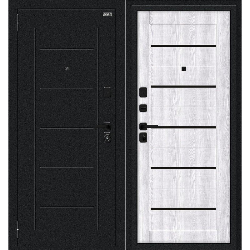 Металлическая входная дверь Борн/SBlack Букле черное/Riviera Ice 205*86 левая