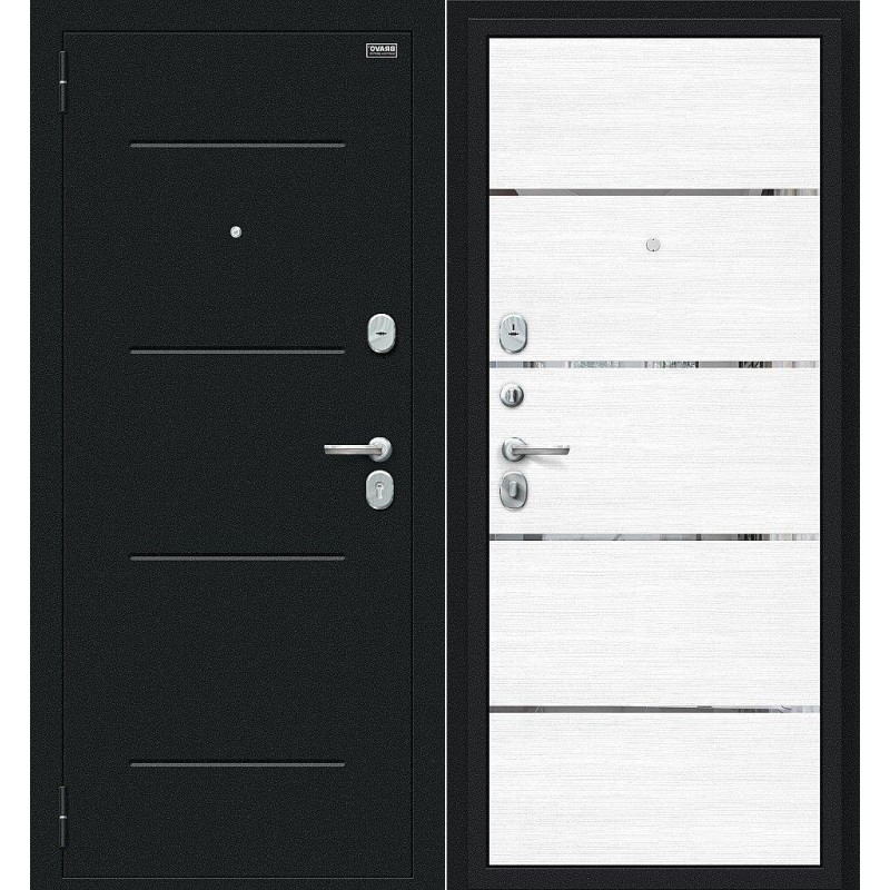Металлическая входная дверь Лайн Букле черное/Snow Melinga 205*86 левая