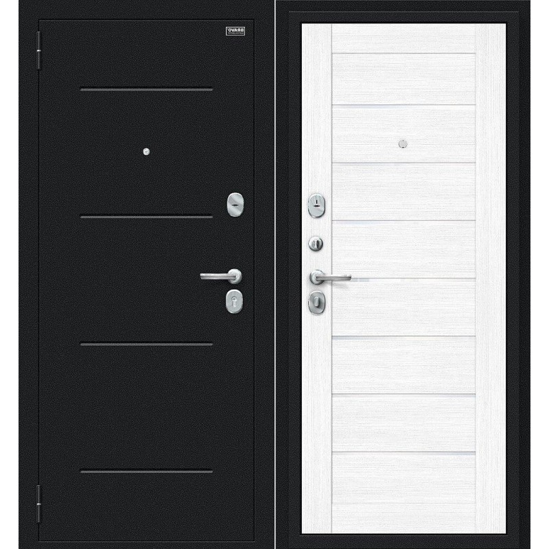Металлическая входная дверь Техно Букле черное/Snow Melinga 205*86 левая