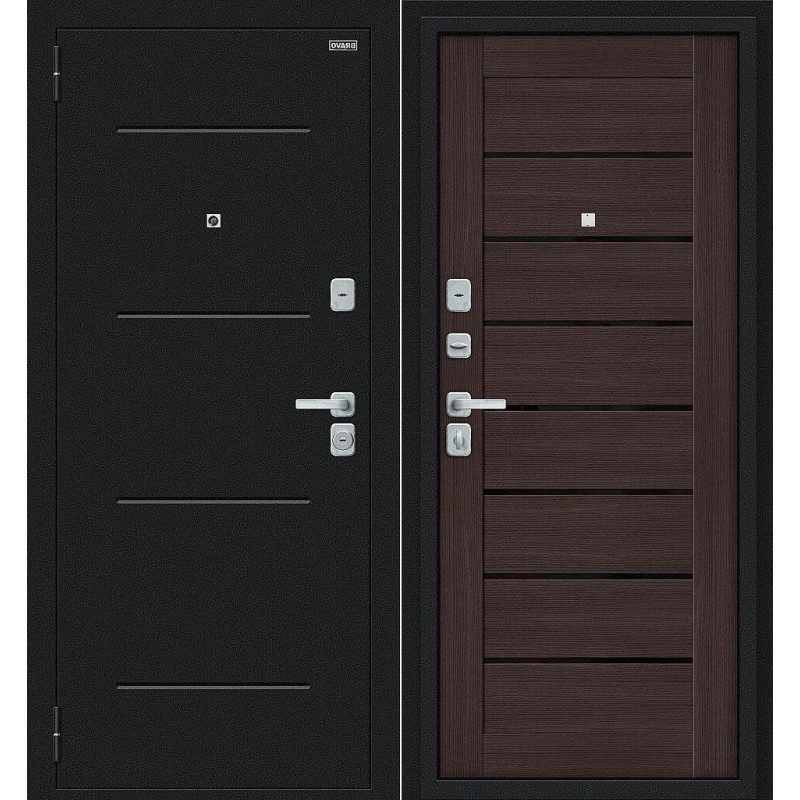 Металлическая входная дверь Техно/BChrome Букле черное/Wenge Melinga 205*86 левая