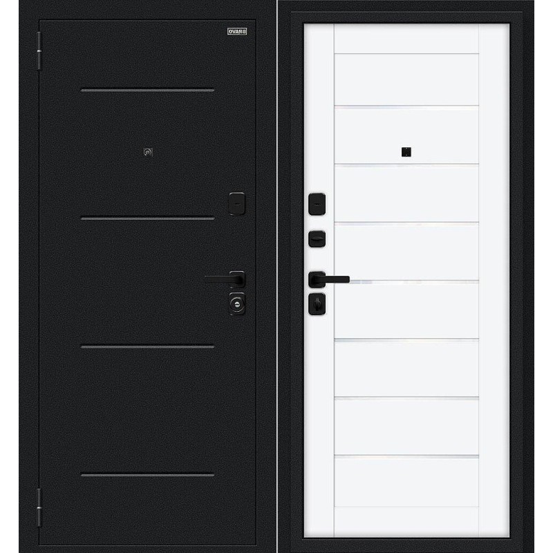 Металлическая входная дверь Техно/SBlack Букле черное/White Silk 205*86 левая