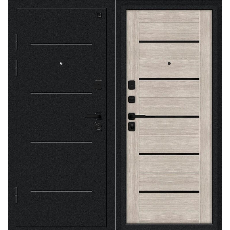 Металлическая входная дверь Грид Букле черное/Cappuccino Melinga 205*86 левая