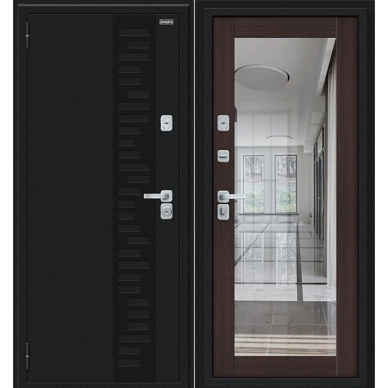 Стальной дверной блок Thermo Флэш Декор-2 Букле черное/Wenge Veralinga 205*86 левая энергосберегающей конструкции с двойным терморазрывом (термомостом) из натуральной пробки и четырехконтурным уплотнением. Поставляется с правым и левым открыванием наружу.