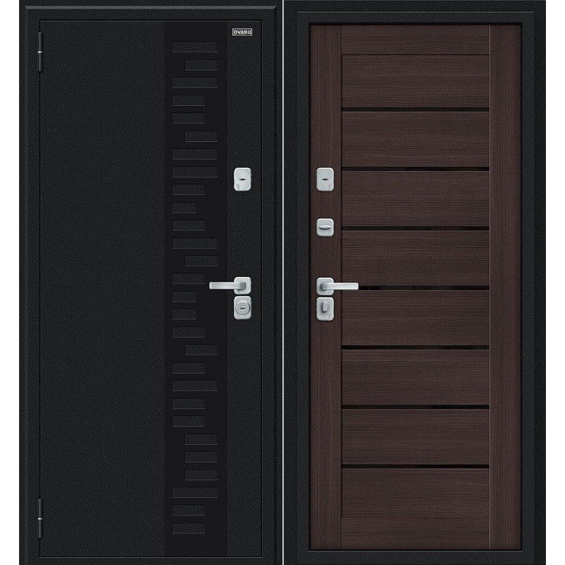 Стальной дверной блок Thermo Техно Декор-2 Букле черное/Wenge Veralinga 205*86 левая энергосберегающей конструкции с двойным терморазрывом (термомостом) из натуральной пробки и четырехконтурным уплотнением. Поставляется с правым и левым открыванием наружу.