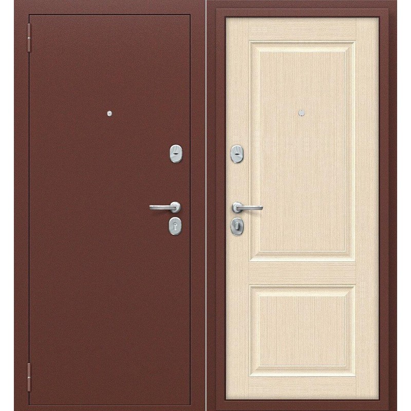 Входная дверь класса Комфорт Тайга-7 Антик Медный/Бежевый клен 205*86 левая с наружным открыванием. Изготовлена из легированной холоднокатаной стали. Двери поставляются в правом и левом исполнении.