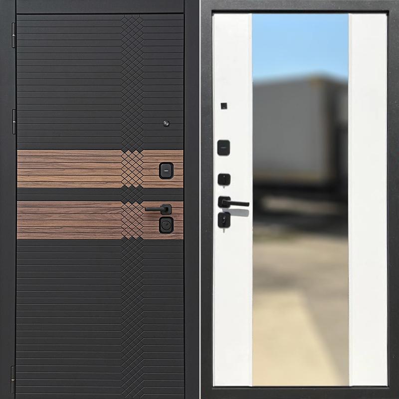 Входная дверь Амадей зеркало Патина черная/Белый (гладкий матовый) 205*86 левая