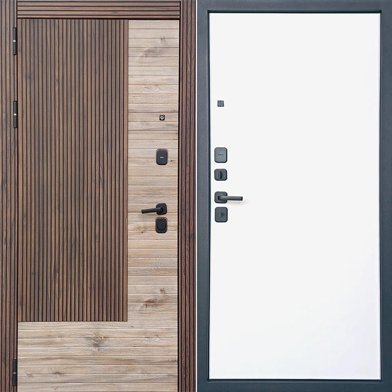 Дверной стальной блок с открыванием наружу, входная дверь Крона Дуб/Белый, производитель Бункер поставляется с правым и левым открыванием. Стабильно точные геометрические показатели, которые обеспечиваются высокой степенью автоматизации и роботизации производства.