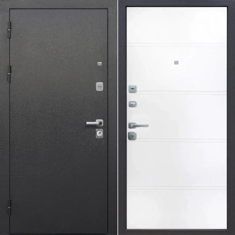 Входная дверь 9 см Серебро / Эмалит белый 205*86 левая