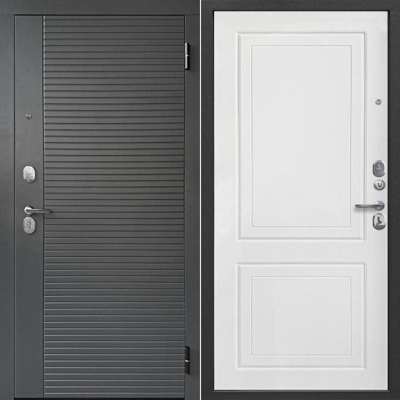 Металлическая Входная дверь Гарда 7 см 2 МДФ Линии Сатин графит / Эмалит Белый 205*96 правая